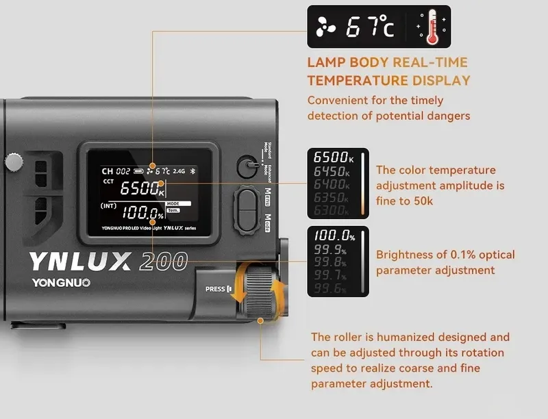 YNLUX200 — це ще потужніша та сучасніша версія ультракомпактного моноблока серії LUX від YongNuo, що дало змогу збільшити потужність до 200 Вт, а також отримати покращене кольоропередавання для професійної роботи. Освітлювач має байонет Bowens, а також кілька вбудованих FX режимів для створення відеоефектів Розширений комплектДо розширеної комплектації LUX200 входить відбивач, для створення яскравішого світлового потоку. Для під'єднання живлення можна скористатися мережевим адаптером під час роботи в студії або батарейною ручкою на два акумулятори NP-F для автономності. Дбайливо та зручно зберігати набір обладнання допоможе кейс. АКУМУЛЯТОРИ У ДАНИЙ КОМПЛЕКТ НЕ ВХОДЯТЬ — за потреби можемо укомплектувати й акумулятори.