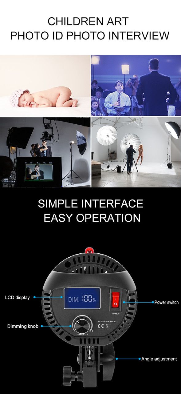 Цей освітлювач вмикається відразу, без розігрівання, і дає постійну світлову температуру 5600 К, яка близька до денного світла та світла від звичайних студійних спалахів.