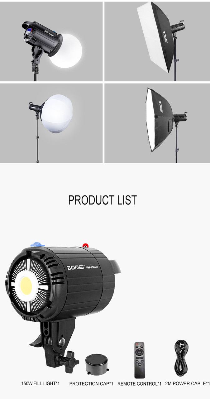 Zomei KW-150MS — це потужний освітлювач на світлодіодах нового покоління з малим енергоспоживанням для постійного освітлення.