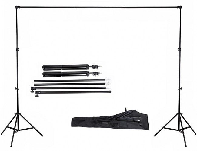 Мвбудована система встановлення тла. Виготовлення виготовлене з легеньких матеріалів, що забезпечує її тривалістю. Чудово підійде для професійного використання в студії. Максимальна висота дорівнює 2400 м. Ворота для встановлення тканинного, паперового або винного тла. Система складається з двох потужних стойок і поперечної перегородки. Функціональні кріплення дають змогу правильно фіксувати конструкції і створювати налаштування габаритів у широкому просторі.