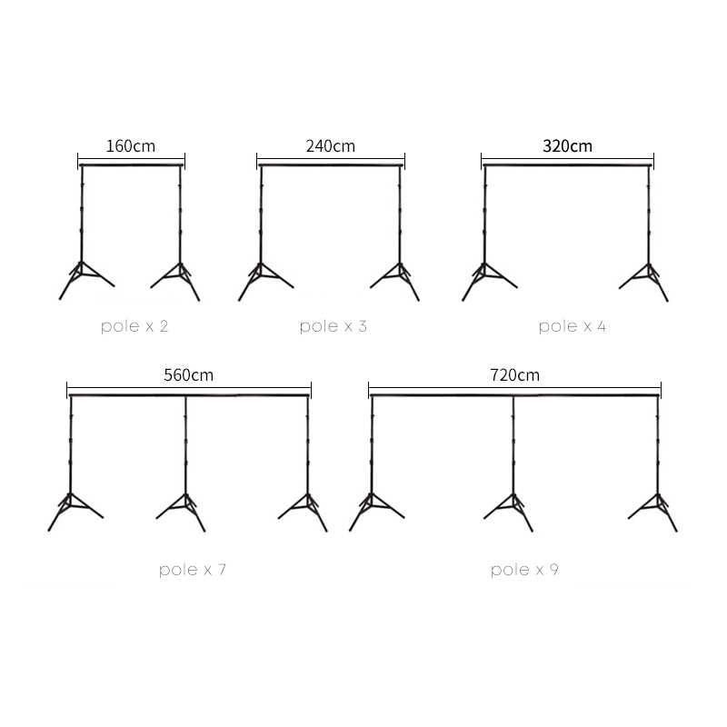 Мдуже гнучка система встановлення тла. Виготовлення виготовлене з легеньких матеріалів, що забезпечує її тривалістю. Чудово підійде для професійного використання в студії. Максимальна висота становить 3,0 м. Ворота для встановлення тканинного, паперового або винного тла. Система складається з трьох Могутні стоок і поперечні переклади. Функціональні кріплення дають змогу правильно фіксувати конструкції і створювати налаштування габаритів у широкому просторі. Верхня переклада складається з 9 секцій, що дає змогу вміщатися в будь-якому приміщенні.