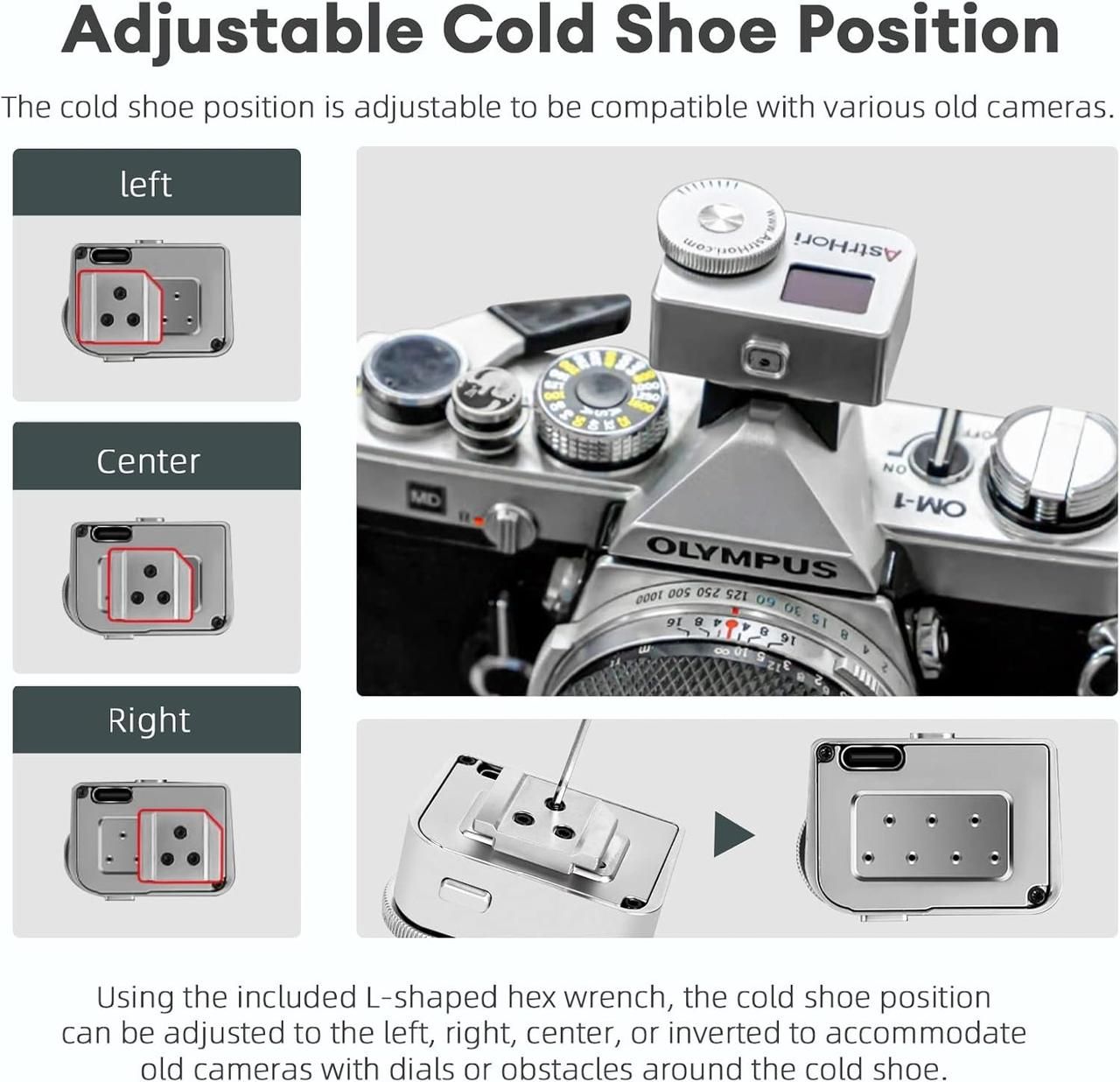 Обраний режим, значення витримки/діафрагми та інші параметри відбиваються на вбудованому 0.66-дюймовому дисплеї. Для кращої сумісності з різними старими камерами положення холодного башмака експонометра можна відрегулювати. Так, холодний башмак можна змістити вліво, вправо, по центру або перевернути, щоб корпус експонометра не перекриває елементи керування камерою.