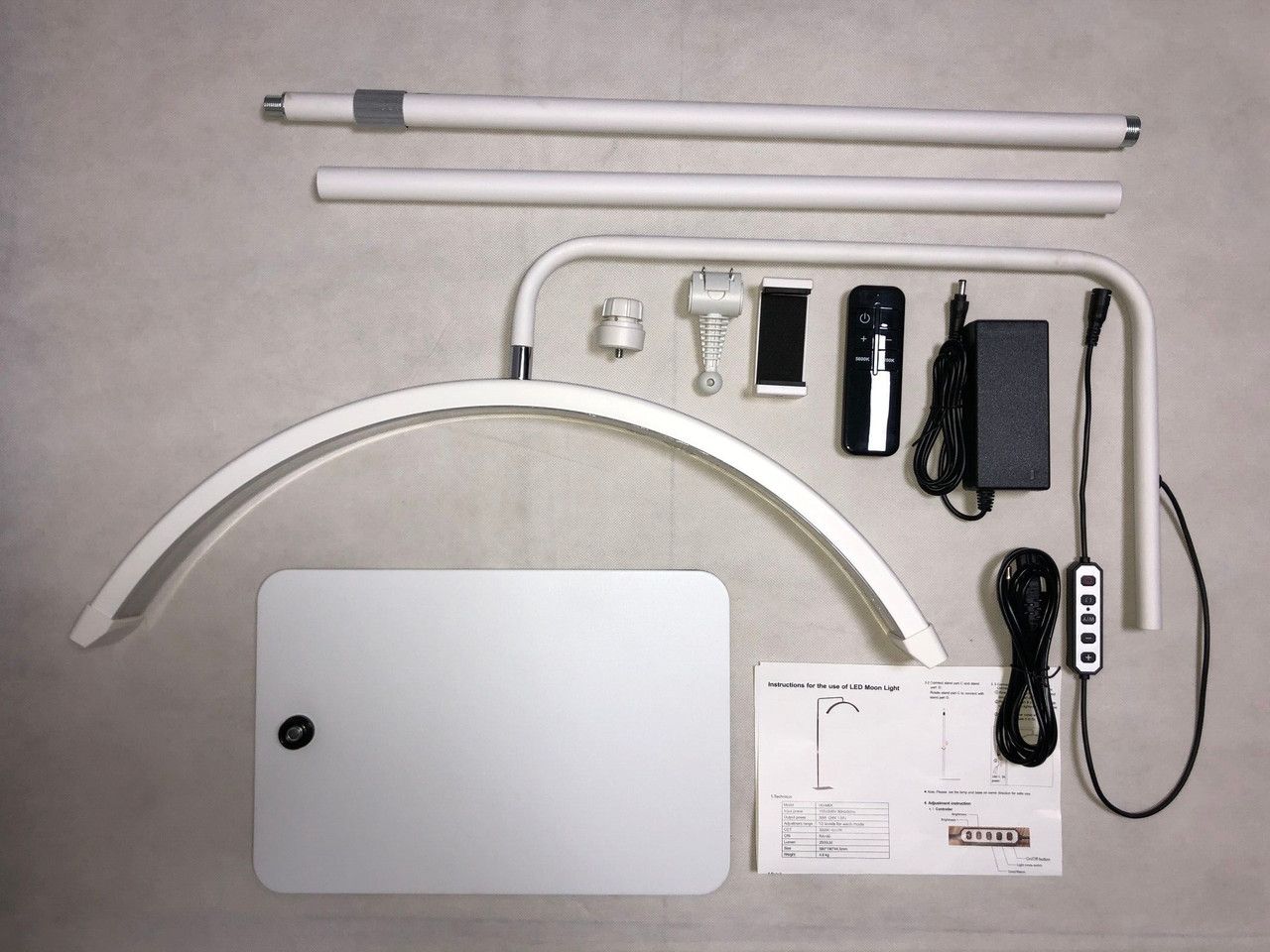 У комплекті лампи є кріплення-кронштейн для мобільного телефона для фотознімання та ведення відео записування, а також наявність дротового пульта керування й бездротового пульта - входить до комплекту