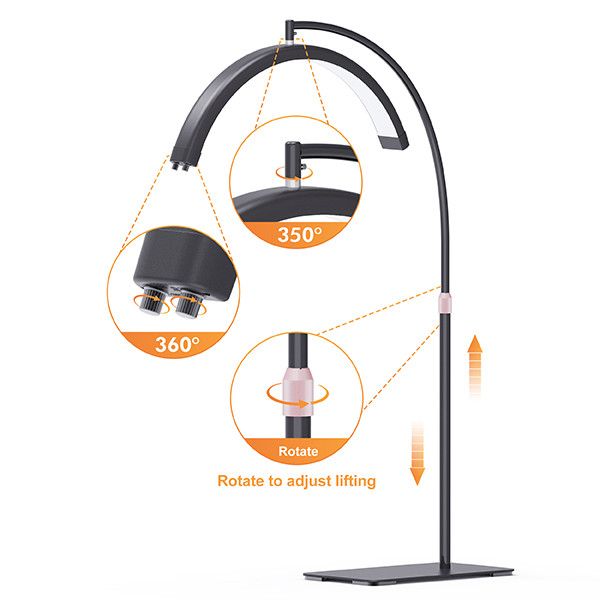 Безтенова лампа на штативі з унікальною формою світильника у формі дуги — це найкращі варіанти професійного світла для стилістів, візажистів, майстрів із нарощування та ламінування вій, майстрів-бровистів, майстрів татуажу, косметологів і інших фахівців у сфері краси.