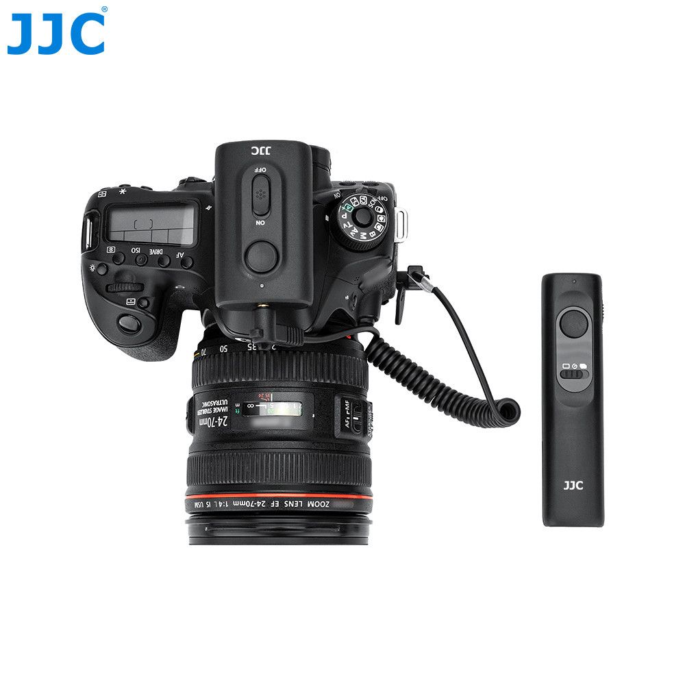 Бездротовий пульт дистанційного керування серії JJC RF-SW призначений для більшості дзеркальних і бездзеркальних камер, які мають роз'єм для дистанційного керування на корпусі камери під стандартний пульт Canon RS-60E3. Пульт дистанційного керування цієї серії працює на частоті 2,4 ГГц і має 16 каналів. Пульт складається з трьох частин: передавача, приймача та сполучного кабелю. Передавач і приймач живляться від двох батарейок ААА відповідно. Передавач може запускати приймач, під'єднаний до камери, без прямої видимості на відстані до 50 м. За допомогою цього пульта дистанційного керування можна реалізувати п'ять режимів знімання: одиничний знімок, знімання із затримкою 5 секунд, 3 безперервні знімки, необмежена кількість безперервних знімків і ручне знімання. Крім того, передавач може одночасно запускати кілька приймачів. На нижній частині ресивера є штативне гніздо 1/4", так що ви навіть можете встановити його на штатив.