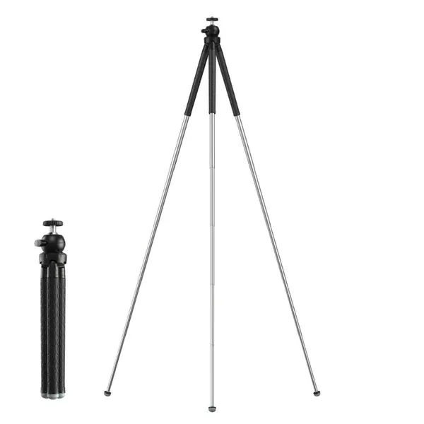 КріпитиНа телескопічний штатив для телефона встановлена штативна головка з вільним панорамним регулюванням 360°, а також із можливістю закріпити смартфон для вертикального знімання. |