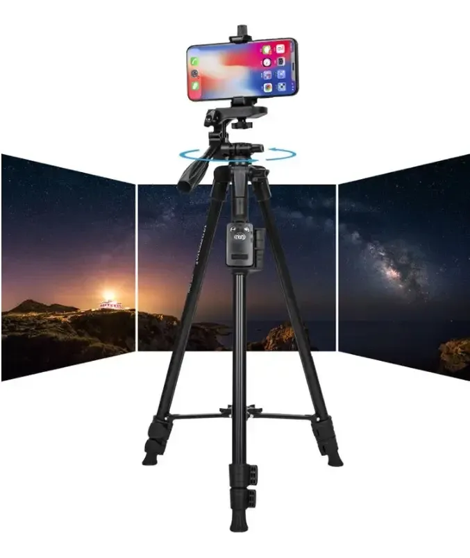 Цей штатив комплектується бездротовим Bluetooth-комплексом. Завдяки Bluetooth пульту, Ви можете керувати камерою телефона на відстані до 10 метрів! Це допомагає Вам у потрібний момент увімкнути та вимкнути камеру або зробити світлину. Також цей штатив обладнаний стандартним гвинтом 1⁄4 дюйма, на який із легкістю можна кріпити, з відповідною гайкою: фотоапарати, камери, екшен-камери, різного роду кріплення або перехідники.