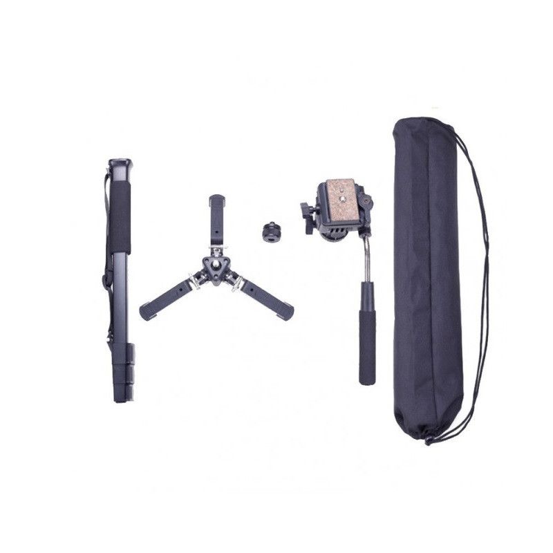 Монопод із підставкою складається з 4 секцій і виготовлений з алюмінієвого сплаву. Затискачі виготовлені з міцного пластику.