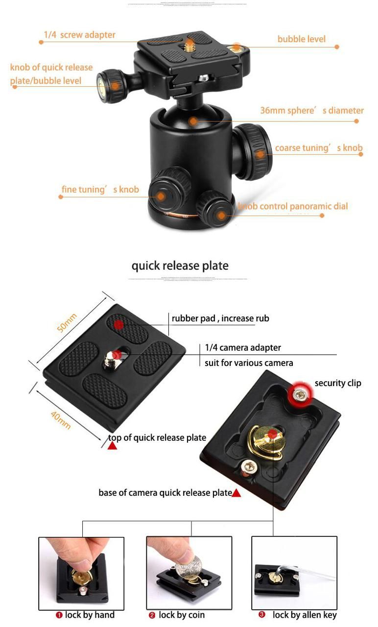 У комплекті: штатив Q-999H (трипод + монопод) + кульова головка QZSD-02 + сумка для перенесення, ключ