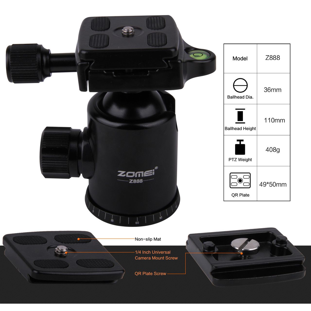 У комплекті: штатив Z888 (трипод + монопод) + шарова головка + сумка для перенесення, ключ