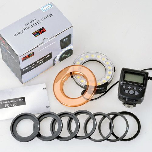 Макро спалахло світло Mike FC110Кільцова LED макрофайл Mike FC-110 Macro є вдосконаленою версією макросівспишки Mike FC-100 Macro, ця диодна макровспашка розроблена для медичної, наукової, судової та макро-фотографічної фотографії. Диодну спалаху FC-110 Macro, що містить 18 світлодіодів високої інтенсивності, можна використовувати як імпульсну спалаху або як освітлювач безперервної дії. Кільцевий спалах Meike FC-110 Macro дозволяє використовувати повне або часткове освітлення, залежно від ситуації.