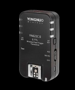 Yongnuo YN62C II che радіосинхронізатор з повною підтримкою E-TTL (II) системи Canon. Пристрій працює у формі трансивера, тобто він може бути як передавач, якщо встановлено на камеру, так і приймача, якщо в нього встановлено спалах.