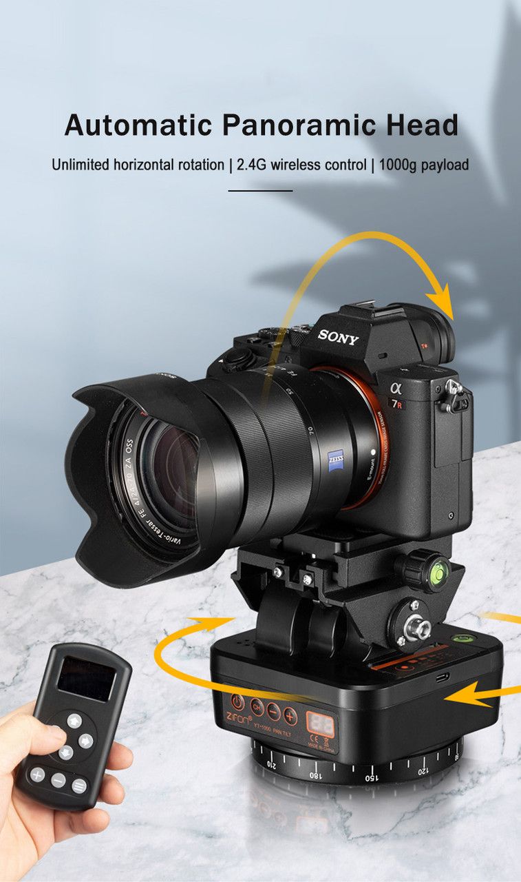 Обертовий моторизований штатив — головка з пультом керування YT-1000 від Zifon для фотоапаратів, відеокамер, екшн-камер і смартфонів