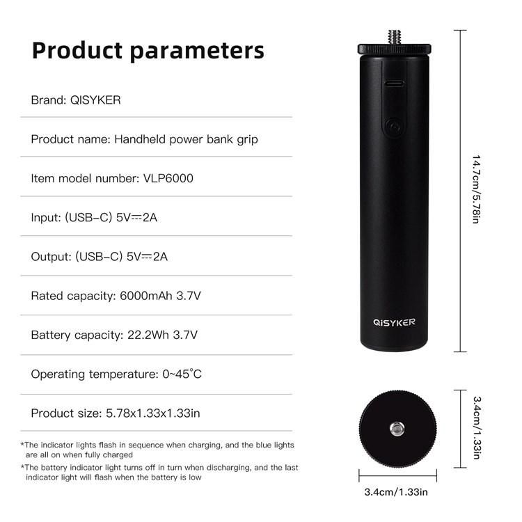 QISYKER VLP6000 — монопод — тримач — стедикам для екшн-камери, телефона з powerbank на 6000 ma