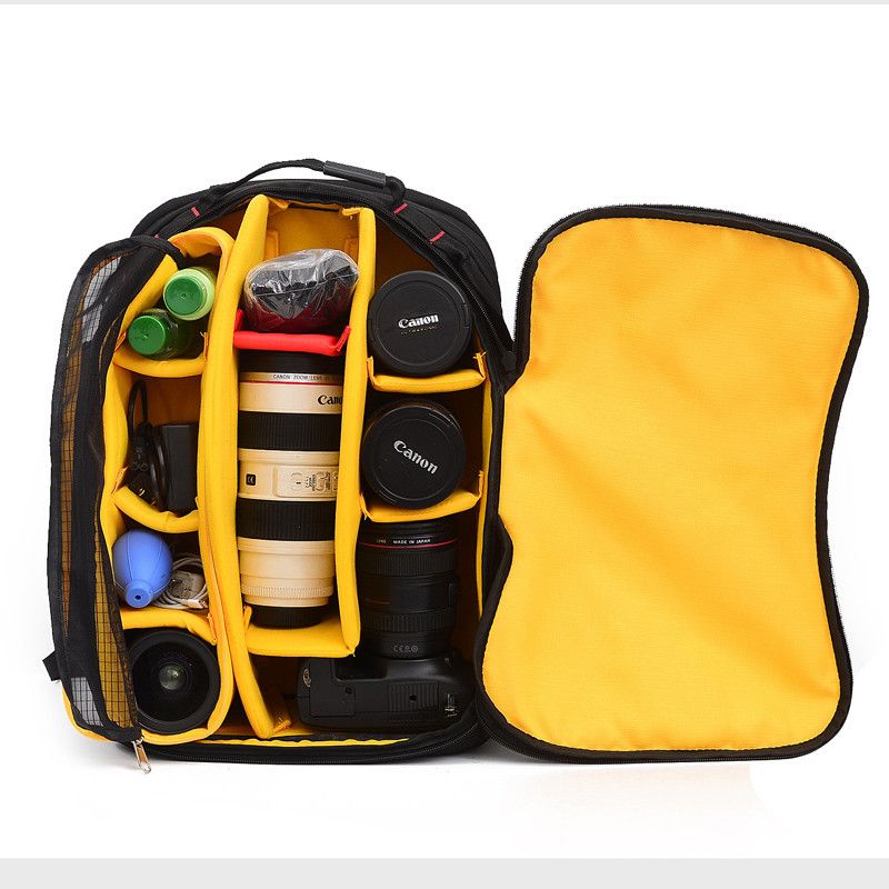 Очень легкий и вместительный рюкзак для фотоаппарата, вмещается фотоаппарат и 3-4 объектива (количество зависит от размера линз), вспышки,отделение для личных вещей и Ноутбука (размер ноутбука до 33 см х 23 х см)