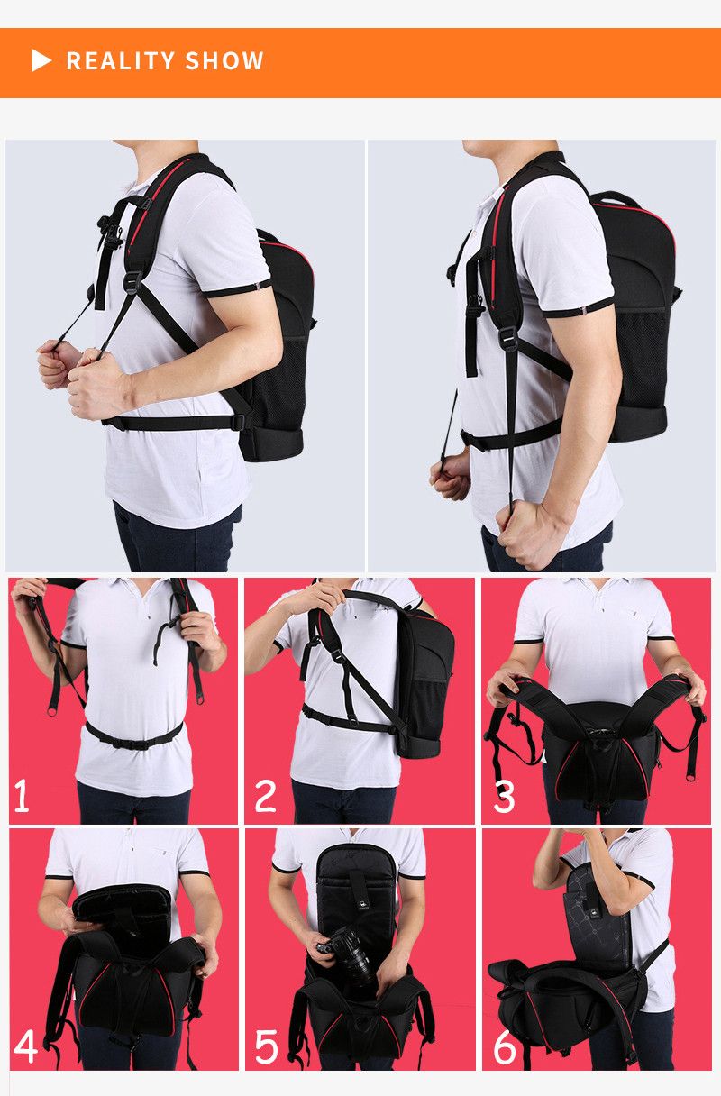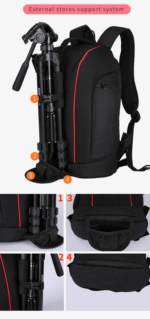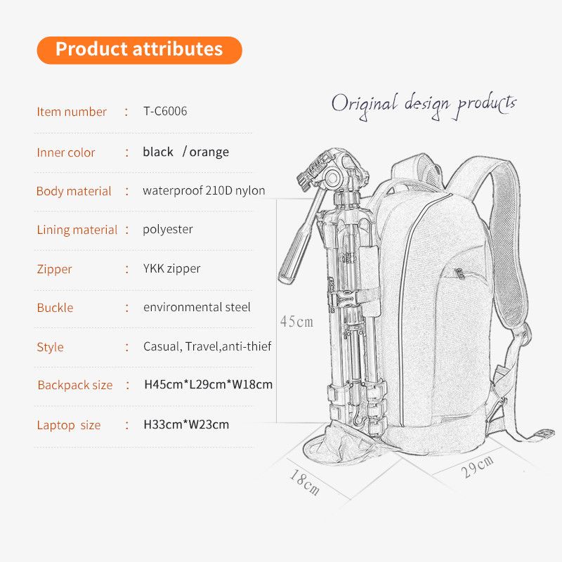 Дуже легкий і вмістливий рюкзак для фотоапарата, вміщає фотоапарат і 3-4 об’єктив (кількість залежить від розміру лінз), спалахи, відділення для особистих речей і Ноутбука (розмір ноутбука до 33 см 23 см)