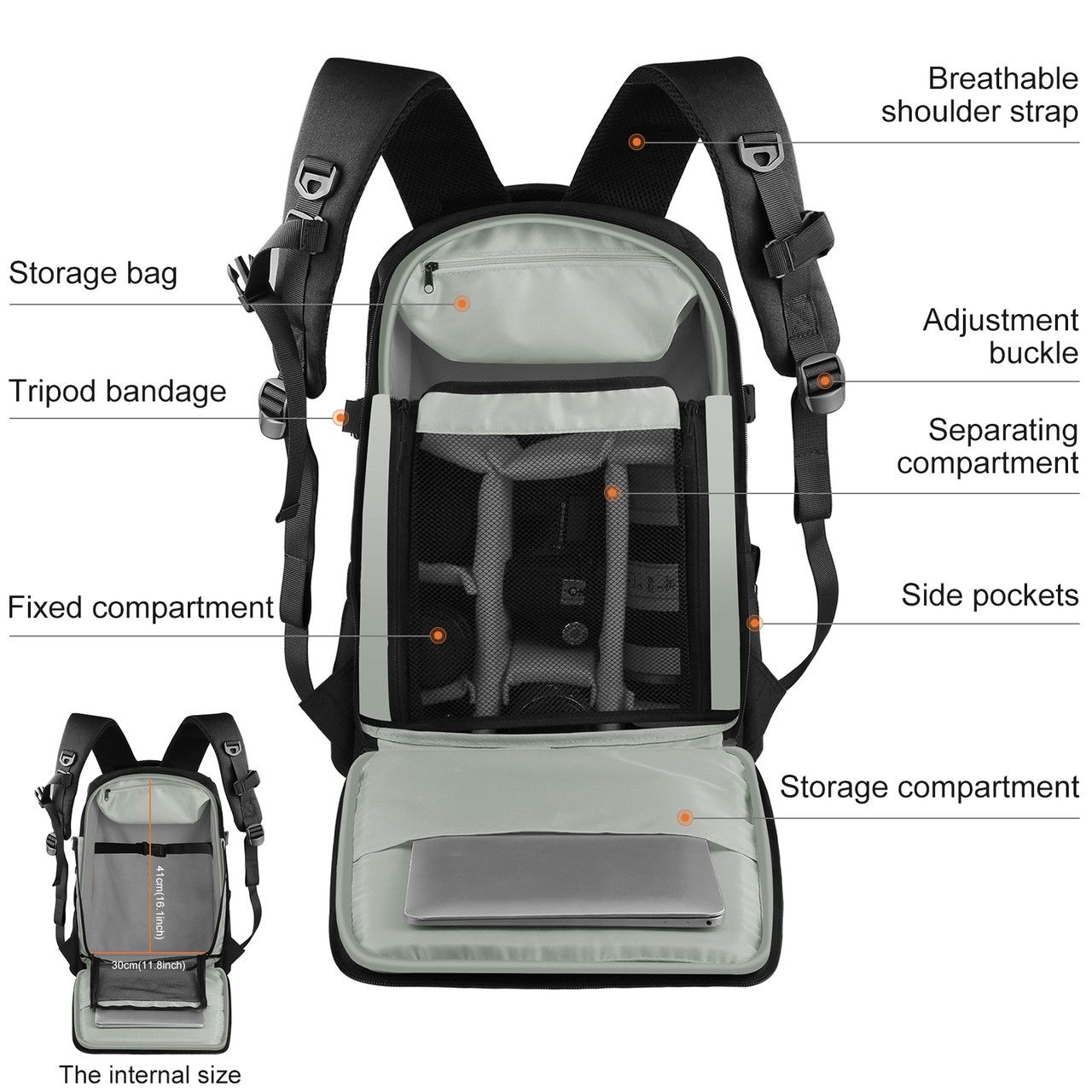 - Великий простір, великий простір, великий простір, прекрасний напарник для занять спортом на відкритому повітрі, який вміщає ваш 13-15-дюймовий ноутбук, камеру, тканину, їжу, пляшку з водою, невелику посуд, журнал, планшет, мобільні телефони, сонце захисні окуляри, складний рушник, губну помаду. і інша косметика.