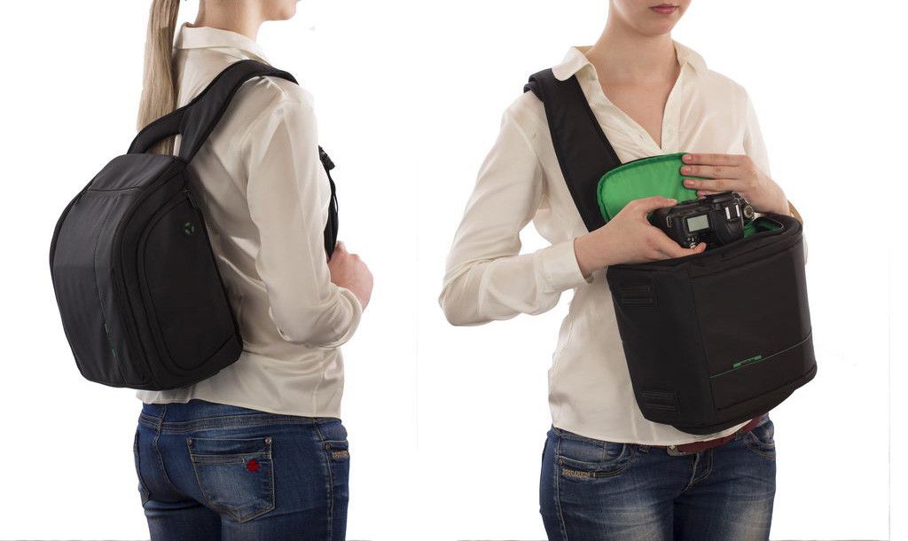 Дуже легкий і вмістливий рюкзак для фотоапарата, вміщає фотоапарат і 3-4 об'єктива (кількість залежить від розміру лінз), спалахи, відділення для особистих речей, є відділення для планщету