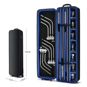 Професійний кофр-валіза Selens A6322 призначений для безпечного транспортування та зберігання студійного фото- та відеоборударування. Завдяки збільшеним розмірам і міцній конструкції ідеально підходить для перевезення фото-відеоборуденції, вміщує до 3 комплектів стійок C-Stand, а також журавель, тримачів, стійки та інші аксесуари. Обладнаний зручними ручками та колесами для комфортного переміщення навіть важкого обладнання.