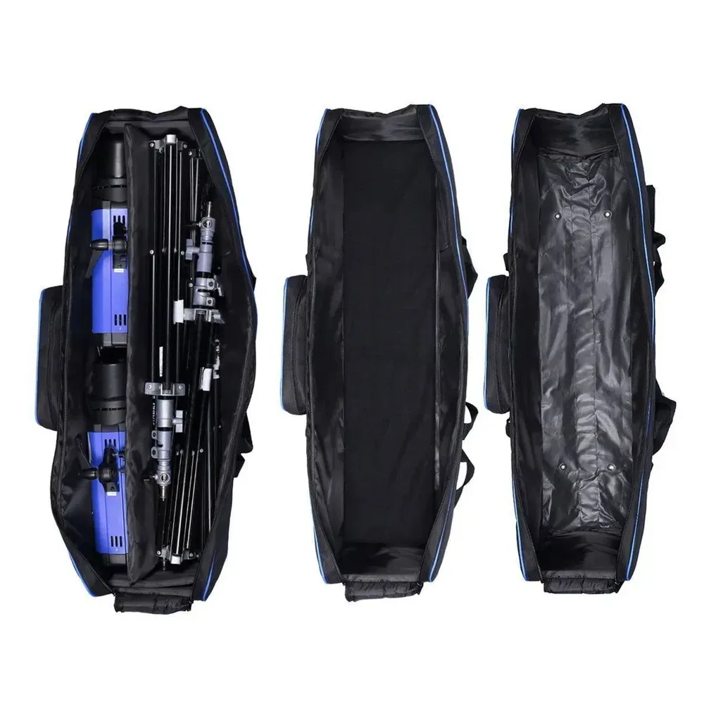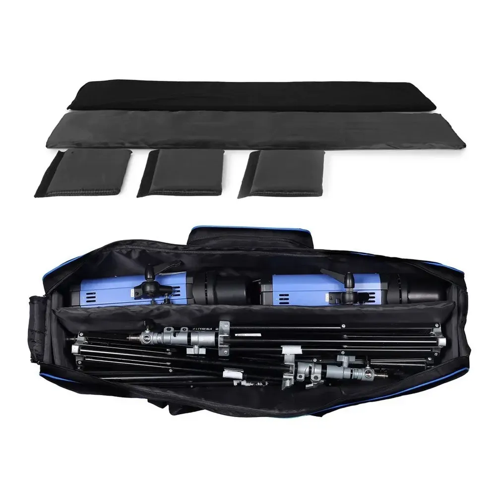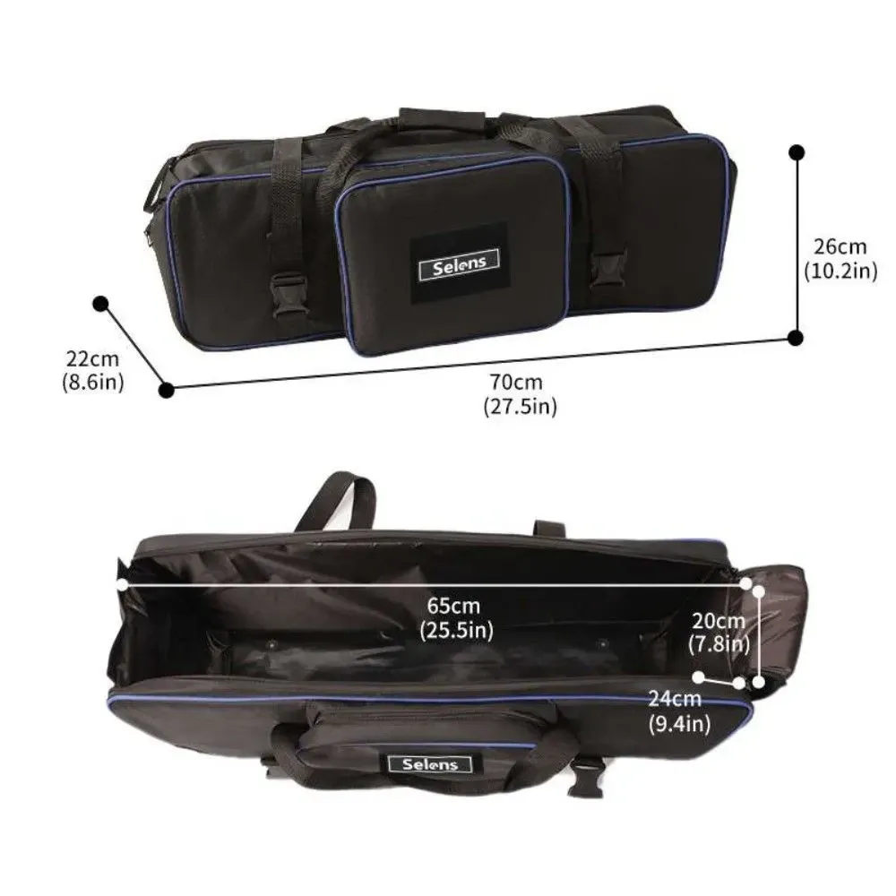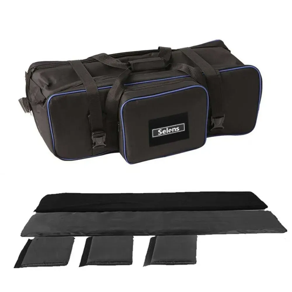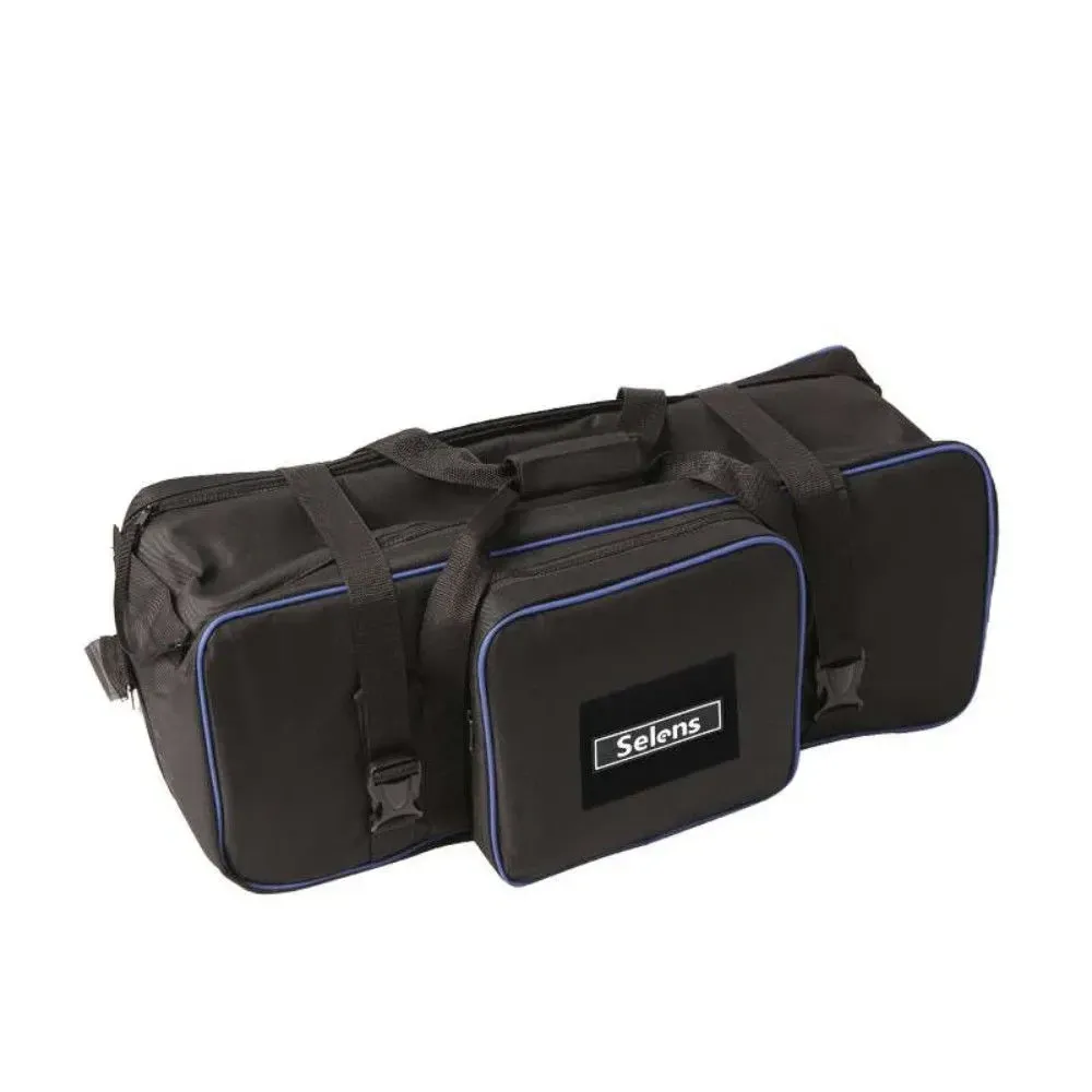 Ця сумка від Selens для перенесення фото-відеобладнання. Ця сумка для перенесення освітлювального обладнання добре спроєктована для перенесення студійного обладнання. Міцна нейлонова сумка надійно захищає ваше освітлювальне обладнання під час перенесення. Її оптимальний розмір підходить для більшості освітлювальних комплектів, а три окремих нейлонових відсіки всередині допоможуть розділити ваші штативи та стійки, запобігти їх пошкодженню один об одного, забезпечуючи безпечніший спосіб захисту вашого обладнання.