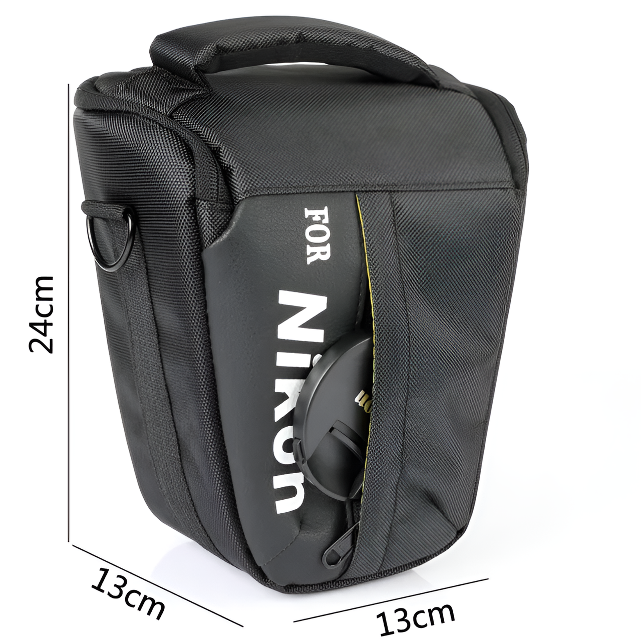 Сумка виготовлена у формі треугалки та призначена для всіх дзеркальних фотоапаратів Nikon.