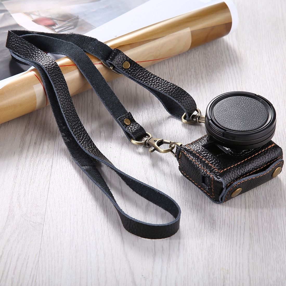 Шкіряний футляр - чохол Puluz для камер GoPro Hero 5, 6, 7 з адаптером та кришкою (код PU305B) чорний