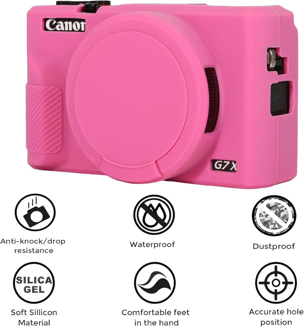 Захисний силіконовий чохол із кришкою для фотоапаратів CANON G7X Mark III — рожевий