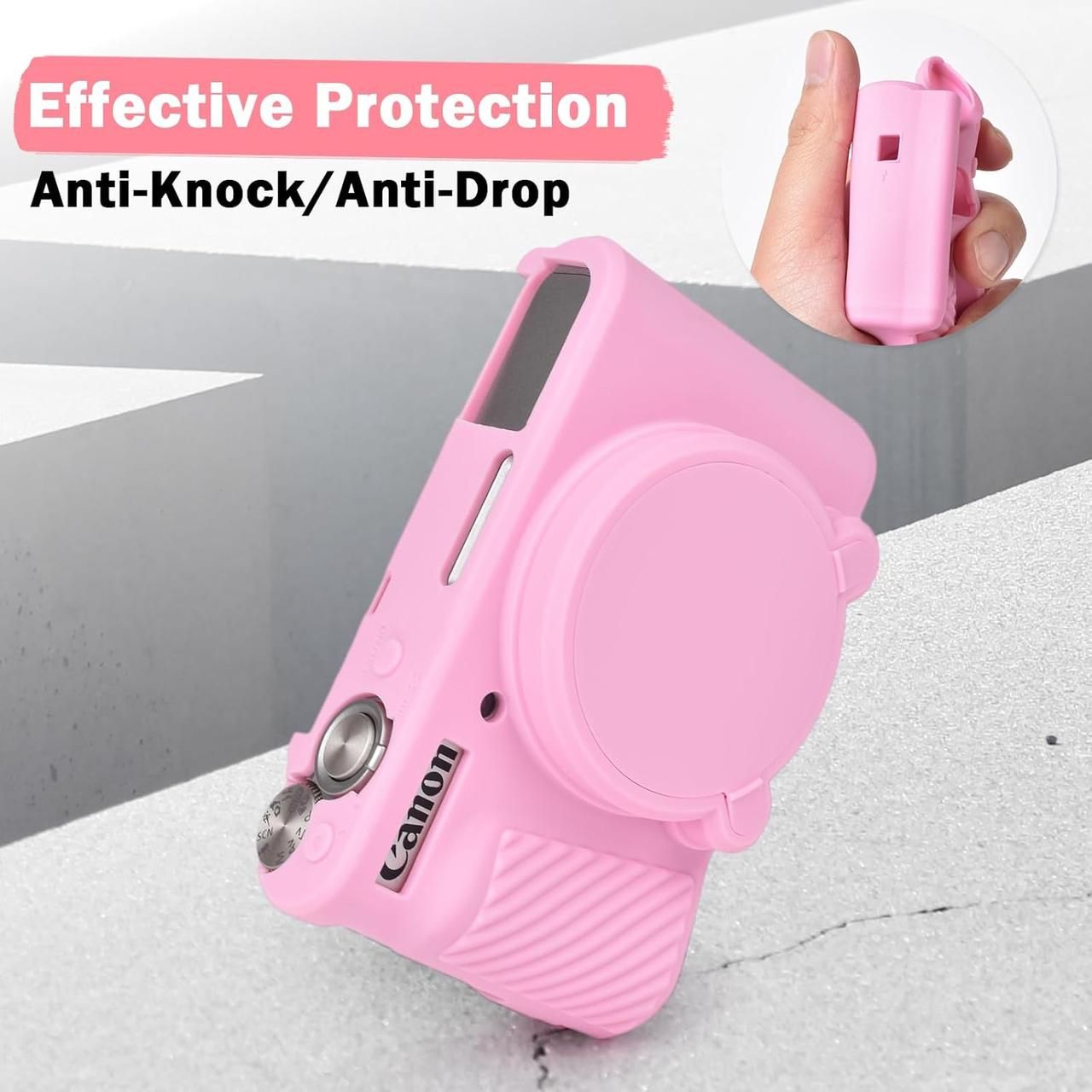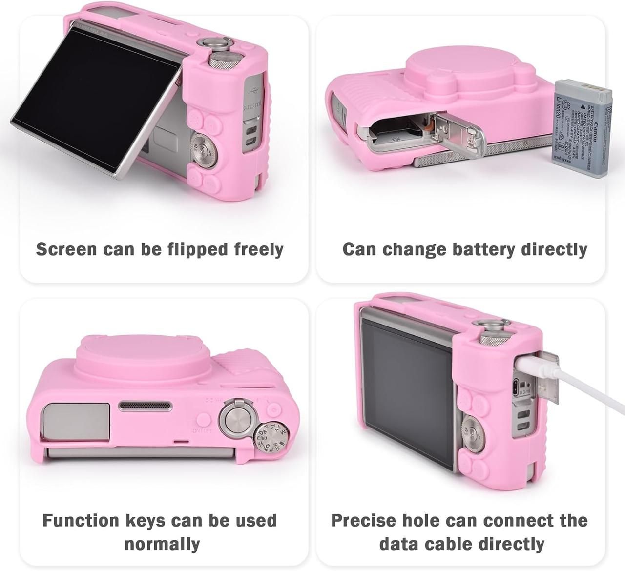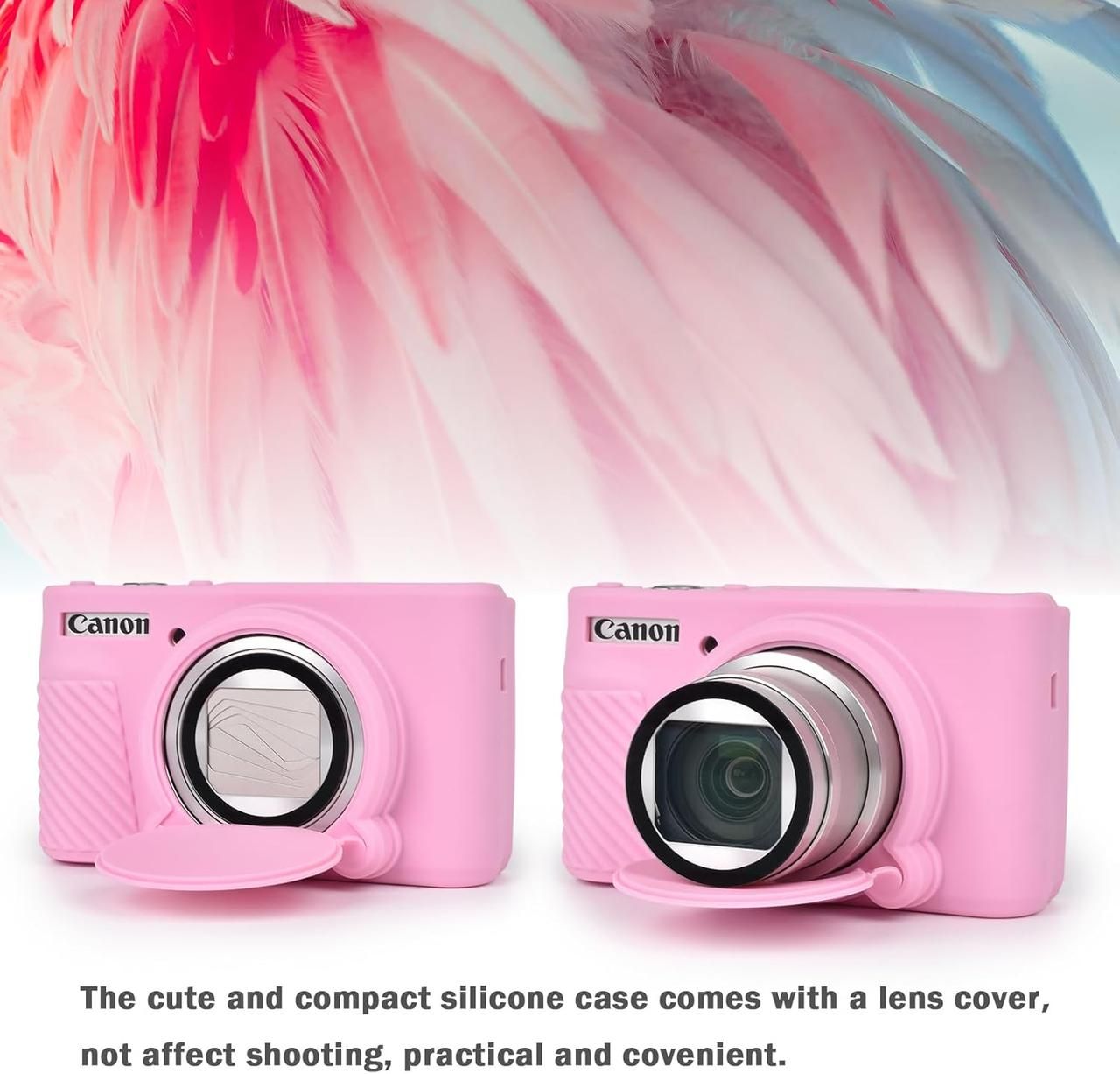 Захисний силіконовий чохол із кришкою для фотоапаратів CANON Powershot SX740, SX730 — рожевий