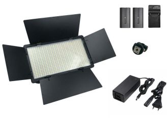 До комплекту входить холодний башмак, тому можна закріпити кут нахилу. У будь-який момент відеосвіт можна взяти із собою, оскільки є можливість під'єднати відразу 2 акумулятором (серія NP-F — F550/F570/F750/F770/F950/F970/F980) На відеосвіті є індикатор заряду батарейок. До комплекту постачання не входять акумулятори — (можна укомплектувати додатково). Режими настроюються плавними димерами. Один димер відповідає за теплу температуру та яскравість, другий за холодну та яскравість.
