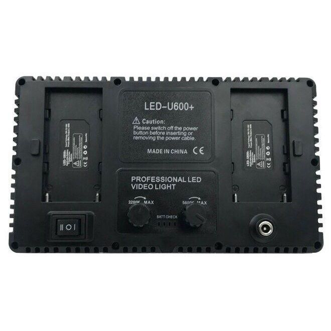 Видеосвет PRO LED U600 Plus складається із 640 шт. високоякісних SMD світлодіодів зі світловипромінювальними кристалами та підвищеною зоною світіння, що дає змогу отримувати підвищену яскравість за тієї ж витрати енергії. Кут освітлення дасть змогу отримати зображення без затінення на краях і без пересвічених зон у центрі. Колірна температура цієї панелі регулюється в діапазоні від 3200К до 6500К завдяки використанню двох груп світлодіодів різної колірної температури. Індекс кольоропередавання (CRI) становить не менш ніж 95%, показник набагато перевищує значення в аналогічних освітлювачів на ринку.