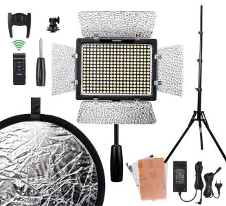 Дуже потужний, легкий і компактний відеосвітло на базі 300 світлодіодів високого індексу передавання кольору CRI 95 (3200K-5500K).