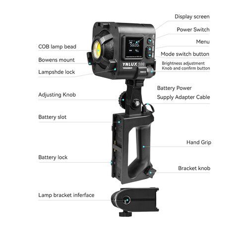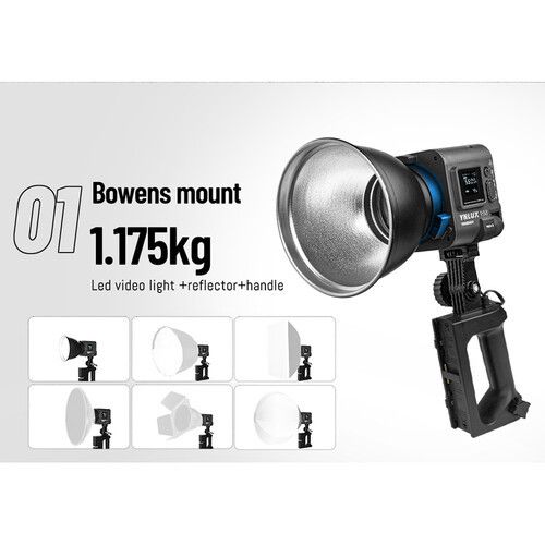 Прилад має потужність 100 Вт і високий індекс кольору. Байонет Bowens дає можливість встановити будь-яку відповідну насадку. У двоколірній версії передбачено 12 FX режимів для відео |