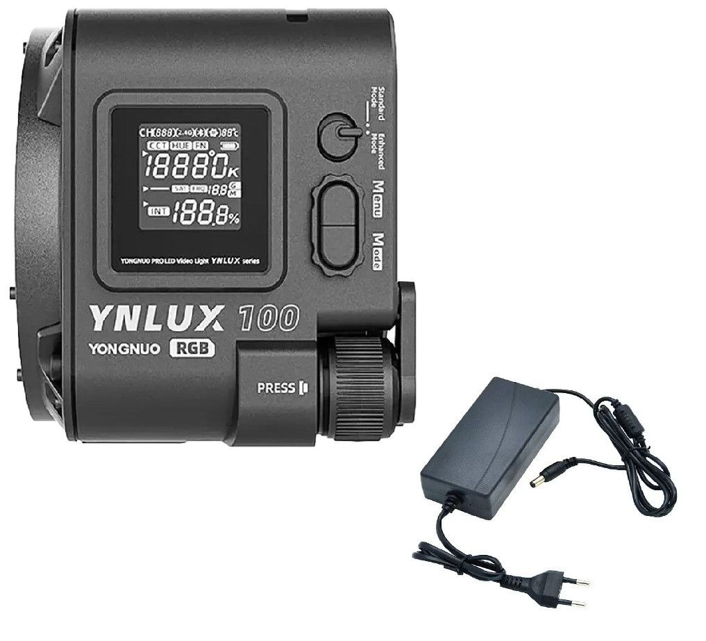 Комплект S: LED-світло, освітлювач, студійне світло Yongnuo YNLUX100 RGB + мережевий адаптер