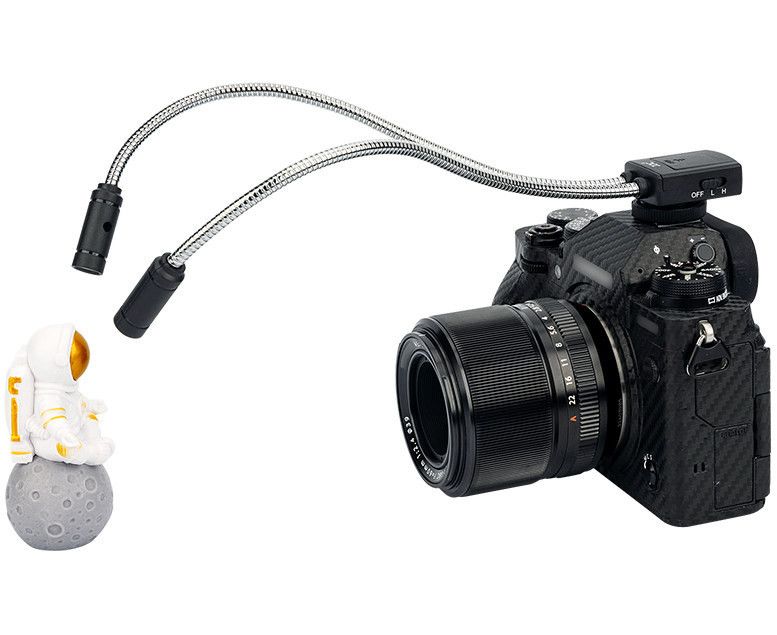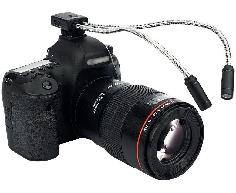 Макросвіт LED-2DII складається з двох світлодіодів, які спеціально розроблені для знімання великим планом або макросівкою. Гібкі дроти можна легко регулювати і згинати, щоб освітлювати зйомку так, як ви задумали. Кожен світлодіодний освітлювач може працювати незалежно або взаємодіяти один з одним, забезпечуючи, таким чином, 5 варіантів освітлення для створення різної яскравості. Температура кольору становить 5600 К, що підходить для знімання комах, рослин, ювелірних виробів, рукоділля тощо. Світлодіодні лампи відзначаються довгим терміном служби до 50 000 годин. Макросвіт є також екологічним, компактним і довготривалим. Конструкція кріплення типу "холодний башмак" дозволяє встановлювати цей макромак на гарячий башмаак камери і живиться від двох акумуляторів CR2025.