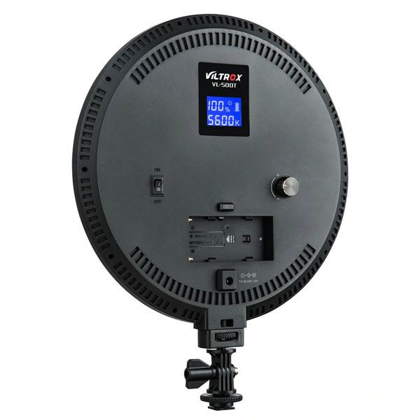 Viltrox VL-500T може працювати як від мережі 220В, так і портативно, використовуючи Li-ion акумулятори. Після з’ єднання з світлою панеллю на мережу відбувається зарядка акумулятора. Інтенсивність світла не зменшується. ЖК-дисплей відображає яскравість, колірну температуру і відсоток заряду акумулятора.