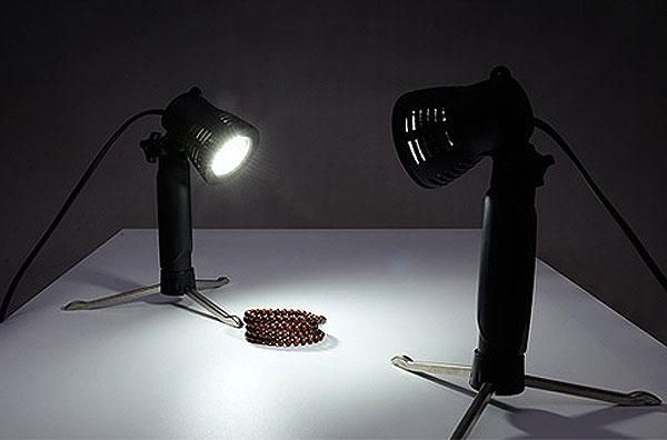 LED світло потужністю 5Вт (50Вт) з температурою 5500K на стоянці зі складеними ніжками - чудово підходить для предметних знімок маленьких виробів, ювелірних прикрас, натюрмортів, макросс'емки, також використовується для знімок продукції інтернет-магазинів. Цей освітлювач контролюється вертикально головкою і висувна основа. З нижньої частини висуваються три металеві « ніжки».