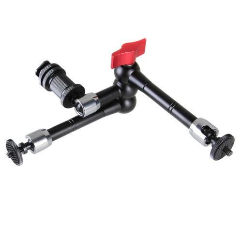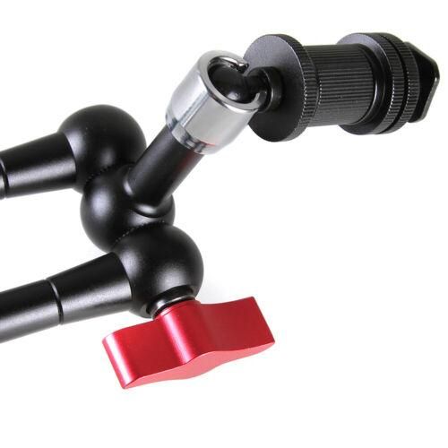 Багатофункціональне універсальне кріплення Magic Arm 11" - Для встановлення аксесуарів (накамерного світла, монітора) до фотоапаратів, відеокамер та стабілізаторів. Міцність складається з металевих Штанг з'єднані між собою шарнірним сполучником з фіксатором. Фіксація всієї конструкції здійснюється центральним затиском. Має кульові зв'язки з поворотом на 90 градусів на кінцях, з одного боку розійматий башмак, на двох інших є болти 1/4" для установки на них аксесуарів. Металічна конструкція забезпечує надійність і довговічність. Надійна конструкція дозволяє закріпити відео і фото аксесуари вагою до 2Кг. Заблокувати всі секцій можна однією ручкою, яка дозволяє швидко і зручно встановити обладнання в потрібному положенні.