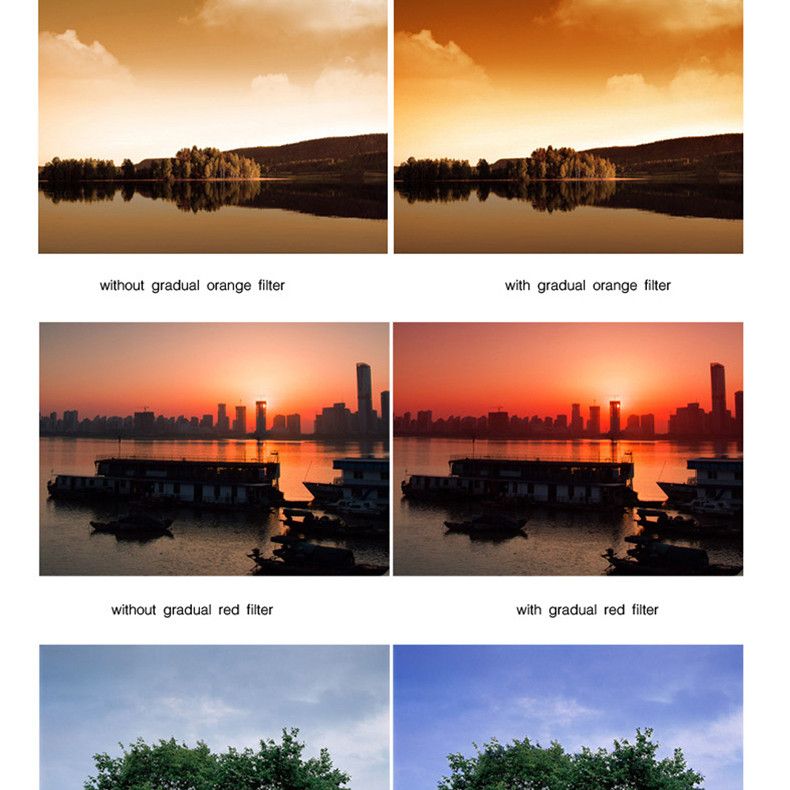 Градієнтні Сині фільтри застосовуються для вирівнювання освітленості в кадрі, використовуються в пейзажній знімці. Наприклад, для інтенсивнішого кольору неба чи води потрібен світловий фільтр.