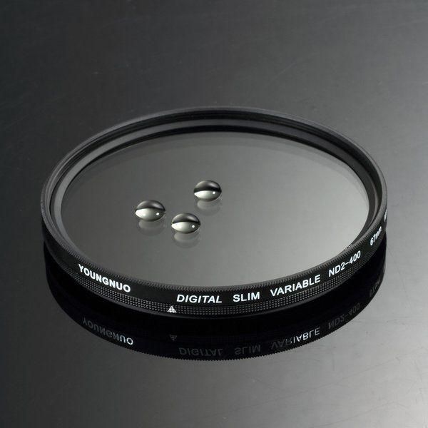 Нейтрально-сірий фільтр змінної щільності ND2-ND400 дозволяють плавно регулювати оптичну щільність Від ND2 до ND400, замінюючи одним фільтром цілий набір нейтрально-сірих фільтрів. Існує декілька звичайних ND-фільтрів, які дозволяють послабити потік світла в 2, 4, 8 і так далі, до 400 разів. Такий ефект спричинений структурою фільтра. Цей фільтр складається з двох лінійних фільтрів, які обертаються в одній площині одна відносно одної. У міру того як він обертається, зображення поступово темніє до повного зникнення.