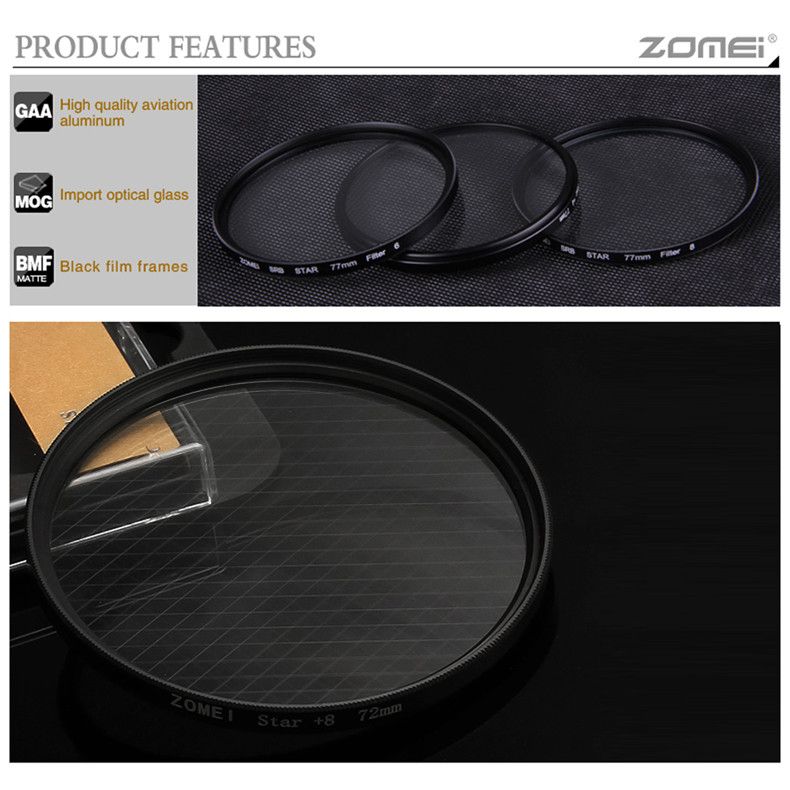Зоряний фільтр ZOMEI 58 мм створює 4 Світло оточує яскраві джерела світла і світлових блисків. Це дає змогу отримати цікаві результати при фотографії відобразень, нічних пейзажів і т. д.