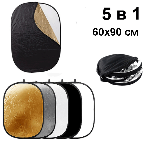 Фото рефлектор - відбивач овальний (прямокутний) 5 в 1 діаметром 60 х 90 см
