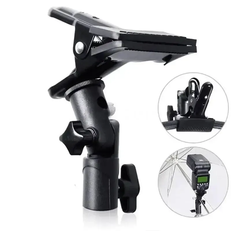 Постачається з перехідником 1/4" — 3/8'', а також обладнаний отвором для парасольки. Тримач відбивача та фону Visico SC-008 виготовлений з алюмінієвого сплаву, міцний і довговічний. Прищіпка надійно утримує складаний фон великого розміру