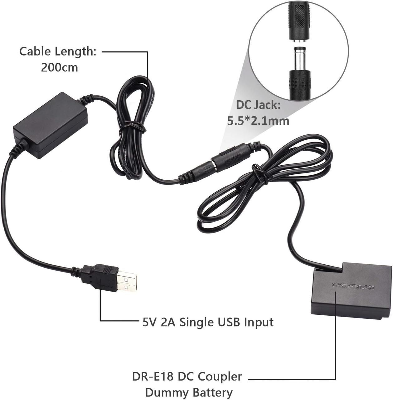 USB адаптер живлення ACK-E18 для Canon EOS R8, R10, R50, RP, 77D, 850D, 800D, 760D, 750D, 200D, 200DII, 250D, 8000D, 9000D, Kiss X8i — замість акумулятора LP-E18