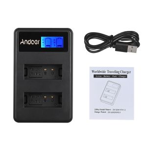 USB зарядний пристрій для двох акумуляторів з високою швидкістю заряду (до 1000mA) акумуляторів Canon LP-E12. Зарядне оснащене LCD дисплеїв для кожного каналу, що показує рівень заряду на кожну батарею.