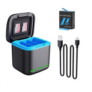 Комплект: зарядний пристрій (на 3 акумулятори) + 1 акумулятора GoPro Hero 9, 10, 11, 12