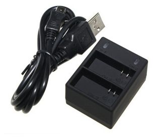 Зарядний пристрій Dual Battery Charger призначено для акумуляторів камер GoPro 3. Має можливість одночасної зарядки одразу 2-х акумуляторів GPro Hero 3 через Порт USB від комп'ютера, ноутбука, від домашньої мережі (требуться вилка-перехідник) або від USB-порту в автомобілі також від переносного POWERBANK. Світлодіодний індикатор, розміщений на пристрої, показує стан зарядки (червоний заряд) / зелений батарея заряджена.