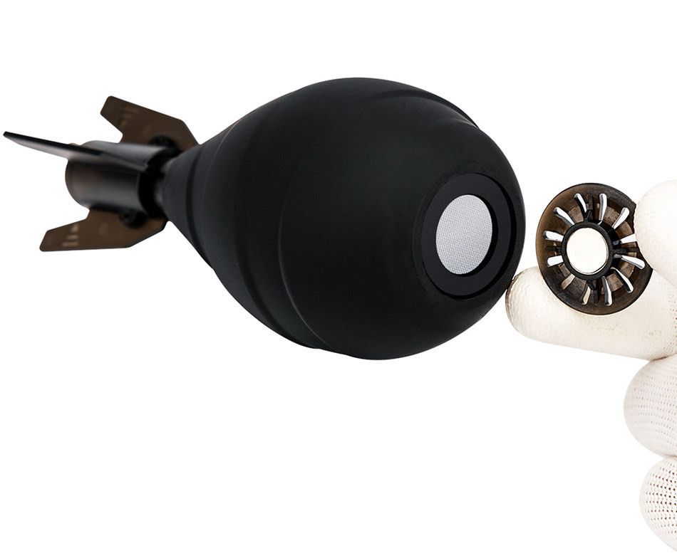 Односторонній повітряний клапан встановлений як на вході, так і на виході, щоб забезпечити односторонній потік повітря і уникнути зворотного потоку забрудненого повітря, що гарантує видушення тільки очищеного повітря. Повітрянозабірник оснащений сіткою, щоб фільтрувати частинки пилу. Конструкція, яка включає магніт між вентиляцією і кришкою ґратки, дозволяє легко змінювати ґратку, яка відфільтровується. Комплект поставки складається з п’яти запасних сеток, які фільтрують. Знімна основа повітряної груші стилує її в форму ракети, що робить її прекрасним прикрасою інтер'єру. Це також дозволяє отримувати задоволення і знімає стрес, стискаючи корпус груші, щоб змусити міні-вентилятор обертатися.