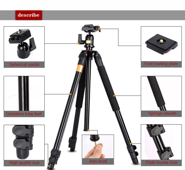 У комплекті: штатив Q-308 (трипод + кульова голівка QZSD-02) + сумка для переноски)