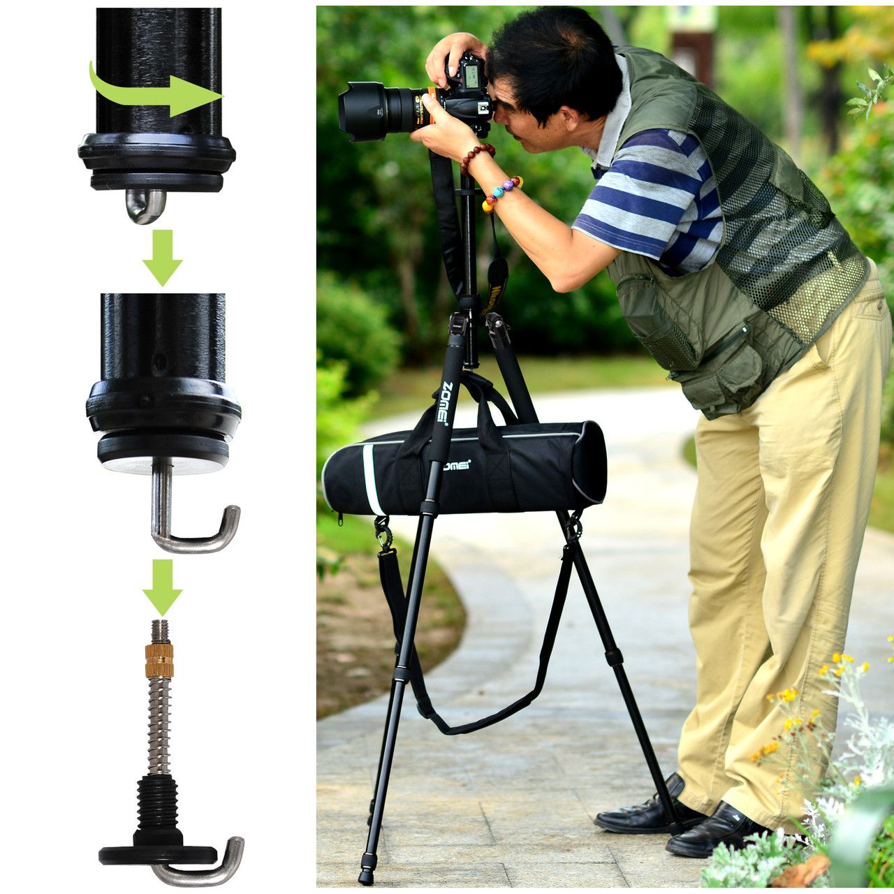 Одним з переваг цього штатива є використання в якості моноподу і робоча висота штатива становить 1685 мм при тривалому стані - 460 мм