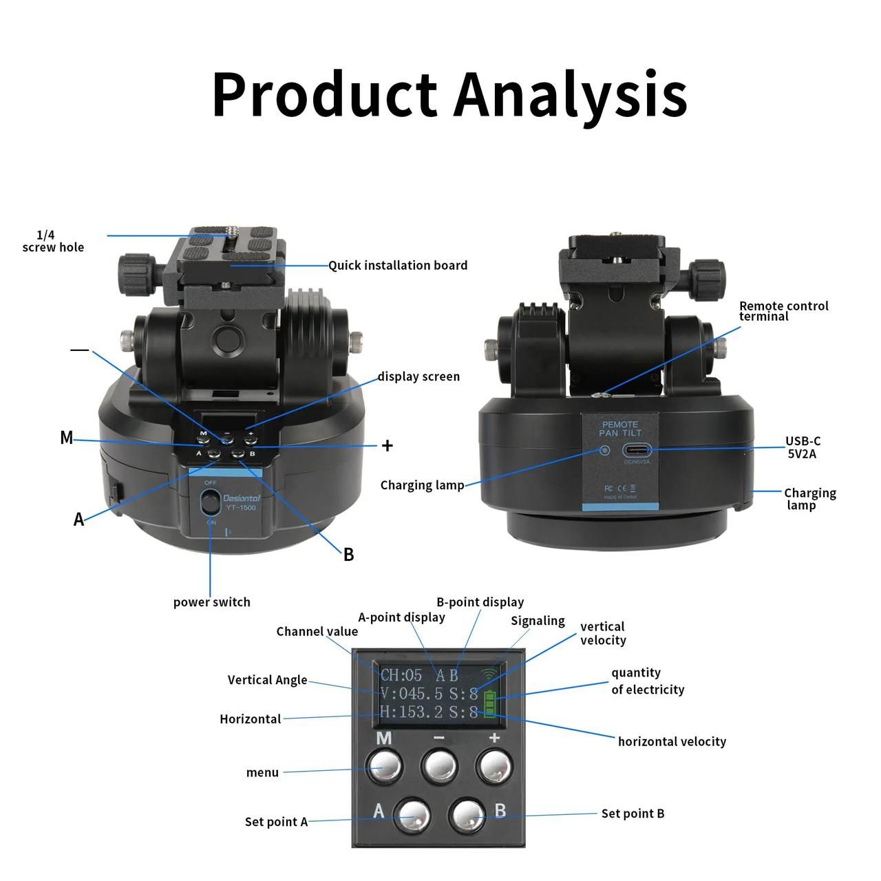 Посилена версія моторизованого штатива YT-1500 з можливістю зміни кута нахилу, плавним і безшумним обертанням, простим керуванням.